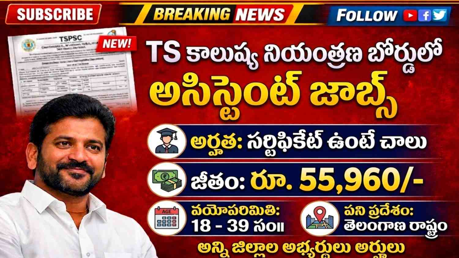 Chemistry డిగ్రీ చదివిన యువతకు ఇది గోల్డెన్ అవకాశం. ఫ్రెషర్స్ అయినా, ఇంకా ఉద్యోగం రాని వాళ్ళైనా సరే – అర్హత ఉంటే వెంటనే అప్లై చేయండి. తెలంగాణలోని గ్రామీణ యువత కూడా ఈ పోస్టుకు దరఖాస్తు చేసి మంచి కెరీర్ నిర్మించుకోవచ్చు. ప్రభుత్వ ఉద్యోగం చేస్తూ పర్యావరణ పరిరక్షణలో పాలుపంచుకోవాలనుకునే వాళ్ళకు ఇది అద్భుతమైన అవకాశం.