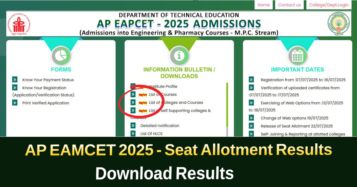 AP EAMCET 2025 Seat Allotment Results Released | ఎంసెట్ సీట్ ఫలితాలు వచ్చేసాయి – పూర్తి వివరాలు