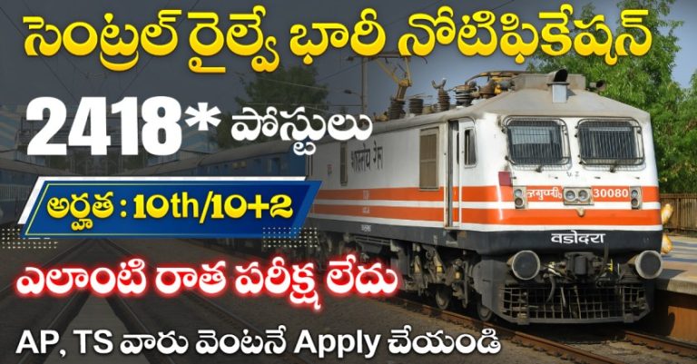Central Railway Recruitment 2025 – సెంట్రల్ రైల్వే 2418 పోస్టులు | Apply Online