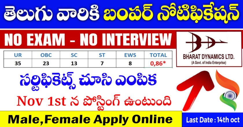 ఈ BDL Apprentices recruitmentలో exam లేనే లేదు. కేవలం academic marks ఆధారంగా merit list తయారు చేస్తారు. అంటే మీరు Degree లేదా Diplomaలో పొందిన percentage ఆధారంగా shortlist చేస్తారు.