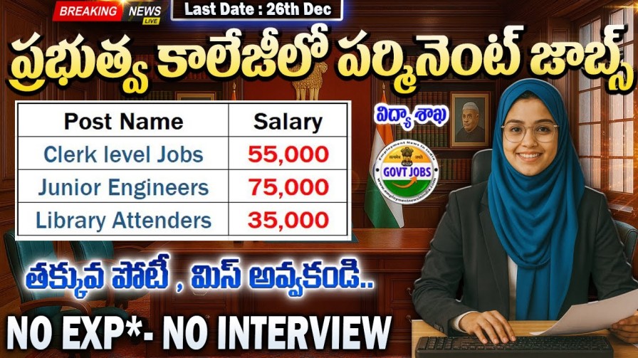 JMI Board Recruitment 2025 – జమియా మిల్లియా ఇస్లామియా లో ఇంటర్ తోనే ఉద్యోగాలు దేశంలో పేరున్న సెంట్రల్ యూనివర్సిటీల్లో ఒకటి జమియా మిల్లియా ఇస్లామియా. దిల్లీలో ఉండే ఈ యూనివర్సిటీకి NAAC నుంచి A++ రేటింగ్ రావడం వల్ల, ఇక్కడ ఉద్యోగం అంటే పేరు, ప్రాముఖ్యత, భద్రత అన్నీ కచ్చితంగా ఉంటాయి. చదువు పూర్తయిన తర్వాత స్టేబుల్ జాబ్ కోసం చూస్తున్న వాళ్లకి JMI Board Recruitment 2025 మంచి అవకాశం. ముఖ్యంగా ఇంటర్ … Read more