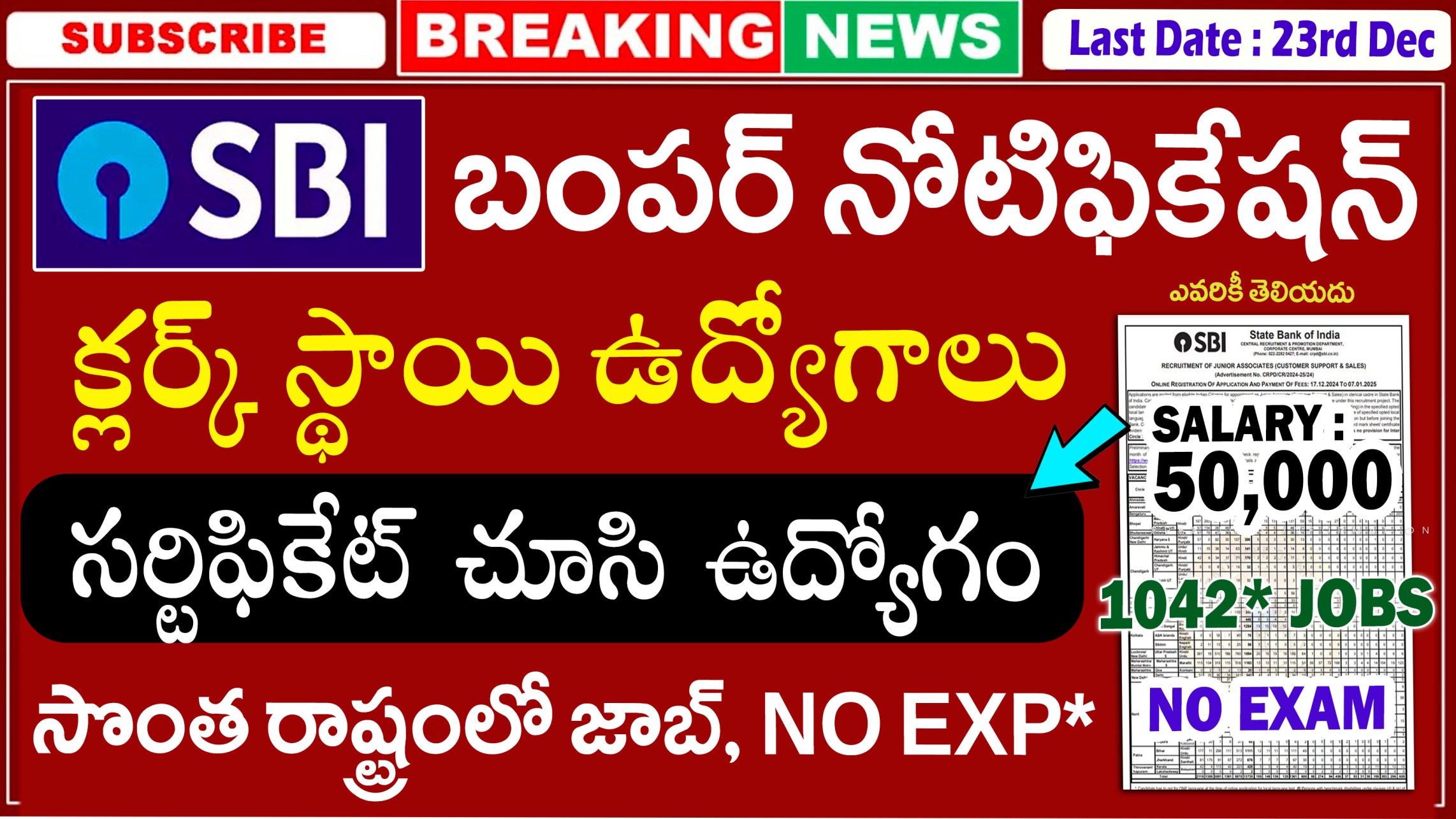 SBI SO Recruitment 2025 – 996 పోస్టులకు భారీ నోటిఫికేషన్ – పూర్తిగా తెలుగులో వివరాలు దేశంలో బ్యాంకింగ్ రంగం అంటే ప్రజలకు ఉన్న నమ్మకం ఎంత బలంగా ఉందో అందరికీ తెలుసు. బ్యాంకులలో ఉద్యోగం అంటే సురక్షితమైన జీవితం, మంచి జీతం, స్థిరమైన కెరీర్. ఆ జాబితాలో ముందు వరుసలో ఉండే సంస్థ స్టేట్ బ్యాంక్ ఆఫ్ ఇండియా. ప్రతి సంవత్సరం కొంతమంది అధికారుల నియామకానికి నోటిఫికేషన్లు ప్రకటిస్తుంది. ఈసారి మాత్రం కొంచెం పెద్ద … Read more