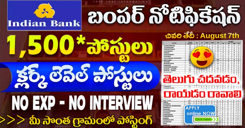 ఇండియన్ బ్యాంక్ అప్రెంటిస్ రిక్రూట్మెంట్ 2025 – పూర్తి వివరాలు తెలుగులో Indian Bank Apprentice Recruitment 2025 : ఇప్పుడు గ్రాడ్యుయేట్ అయ్యాక ఏం చేయాలి? అని తలపోస్తున్నవాళ్లకి గోల్డ్‌మెన్ ఛాన్స్ వచ్చేసింది. భారతదేశంలోని ప్రముఖ పబ్లిక్ సెక్టార్ బ్యాంకులలో ఒకటైన ఇండియన్ బ్యాంక్ 2025-26 ఏడాదికి 1500 అప్రెంటిస్ పోస్టులు కోసం రిక్రూట్మెంట్ నోటిఫికేషన్ విడుదల చేసింది. బ్యాంకింగ్ రంగంలోకి అడుగు పెట్టాలనుకునే వాళ్లకి ఇది బాగా ఉపయోగపడే అవకాశం. సెలెక్ట్ అయ్యే వాళ్లకి … Read more
