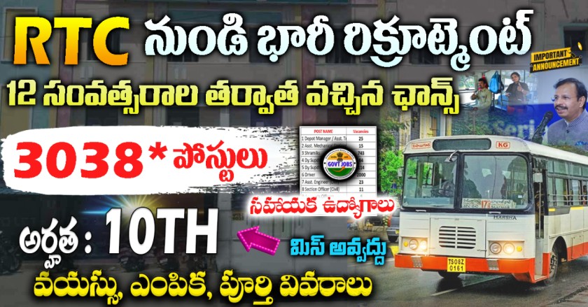 TSRTC Jobs 2025 – 3038 పోస్టుల భర్తీ ప్రకటన | TSRTC Recruitment Notification Full Details