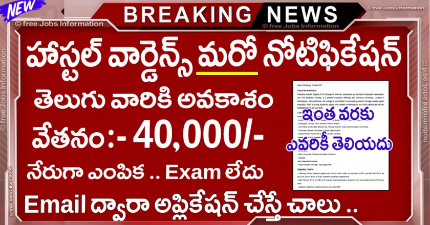 Eyy Freinds… Hyderabad lo unna Kasturba Gandhi Degree & PG College for Women lo fresh ga Faculty and Non-Teaching jobs notification escharu monna. E job ante normal job kaadhu ra – UGC norms ki set aina lecturer posts, Hostel warden post kuda undhi. Especially degree, PG, NET/SET chesina girls/women ki perfect job chance idi. Below … Read more