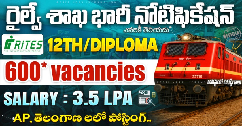 రైల్వే జాబ్స్ 2025 – RITES లో భారీ నోటిఫికేషన్ విడుదల! Rites Recruitment 2025 భారత రైల్వేలో పని చేయాలని కలలు కంటున్న వారందరికీ ఇది ఒక గోల్డెన్ ఛాన్స్ అని చెప్పొచ్చు. ఈ సారి Rail India Technical and Economic Services (RITES) సంస్థ నుంచి కొత్తగా భారీగా ఉద్యోగాలు ప్రకటించింది. మొత్తం 600 పోస్టులు ఖాళీగా ఉన్నాయని అధికారిక నోటిఫికేషన్ ద్వారా వెల్లడించారు. ఈ పోస్టులు దేశవ్యాప్తంగా ఉండబోతున్నాయి. ఇంటర్ తర్వాత … Read more