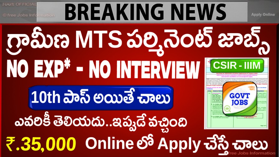 CSIR IIIM Multi Tasking Staff Notification 2025 : ప్రస్తుతం 10వ తరగతి పాస్ అయిన వారికి ఒక మంచి అవకాశం వచ్చింది. భారత ప్రభుత్వ సైన్స్ అండ్ టెక్నాలజీ మంత్రిత్వ శాఖ పరిధిలో పనిచేస్తున్న CSIR–Indian Institute of Integrative Medicine (CSIR–IIIM) సంస్థలో Multi Tasking Staff (MTS) పోస్టుల కోసం కొత్త నోటిఫికేషన్ విడుదలైంది. ఇది సెంట్రల్ గవర్నమెంట్ కింద వచ్చే పర్మనెంట్ ఉద్యోగం, కాబట్టి ప్రభుత్వ ఉద్యోగం కోసం ఎదురు చూస్తున్న వారికి ఇది మంచి అవకాశం అని చెప్పాలి.