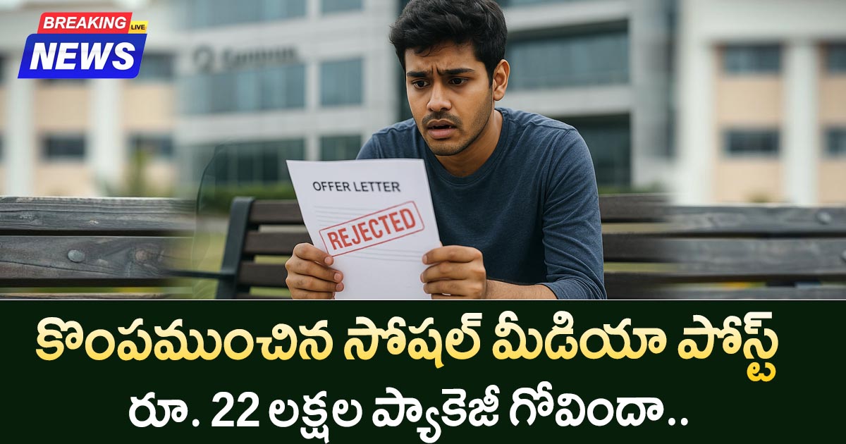 హైదరాబాద్లోని ఓ ప్రైవేట్ ఇంజినీరింగ్ కాలేజీ నుంచి కంప్యూటర్ సైన్స్ లో బీటెక్ చేసిన యువకుడు పేరు వినిపించేస్తోంది ఇప్పుడు సోషల్ మీడియాలో. పేరు వికాస్ రెడ్డి (అసలుపేరు మార్చాం). టీమ్ జాబ్హీ ద్వారా ఇటీవలే అతనికి రూ. 22 లక్షల ప్యాకేజ్ ఉన్న జాబ్ ఆఫర్ వచ్చింది. ఇంటర్వ్యూలు, టెస్ట్లు అన్నీ క్లియర్ చేసి, ఫైనల్ ఆఫర్ లెటర్ కూడా చేతిలో పడిపోయింది. అంతా ఓకే అనిపించిన టైంలో ఒక్క సోషల్ మీడియా పోస్ట్ జీవితాన్ని తలకిందులా మార్చేసింది.