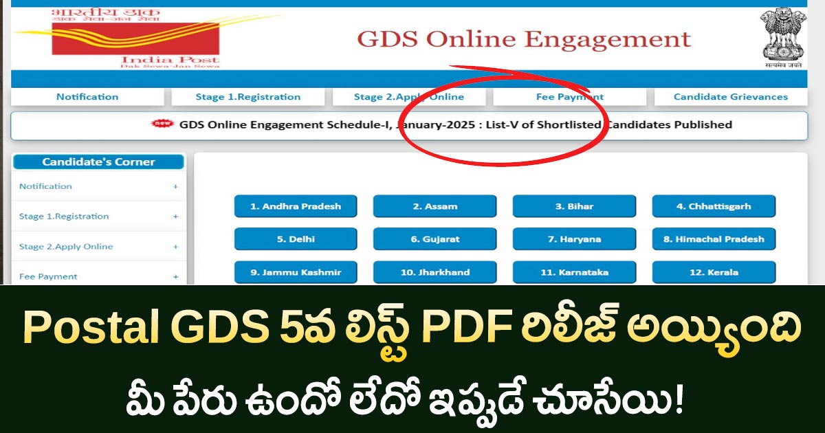 పురత్తుగా అర్థం చేస్కోండి – GDS రిక్రూట్మెంట్ లో రాత పరీక్ష ఉండదు. పదో తరగతి (SSC) మార్కుల ఆధారంగానే మిమ్మల్ని ఎంపిక చేస్తారు. అలా మొదట్లో వచ్చిన మెరిట్ లిస్టుల్లో ఎంపిక అయినవాళ్లు డాక్యుమెంట్స్ వెరిఫికేషన్ (DV) కి వెళ్లి, కొందరు వెళ్ళలేదు లేదా అర్హత రాలేదు. వాళ్ళ స్థానాల్లో ఇప్పుడు 5వ మెరిట్ లిస్ట్ రిలీజ్ చేశారు.