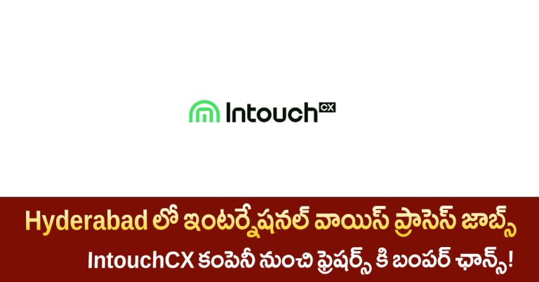 Hyderabad Mindspace ప్రాంతంలో ఉన్న IntouchCX నుండి వచ్చిన ఈ International Voice Process – US Process జాబ్స్ freshers & experienced candidates కి ఒక మంచి career opportunity. English communication skills ఉన్న వాళ్లు, customer handling లో interest ఉన్న వాళ్లు తప్పకుండా ఈ అవకాశం miss కాకూడదు.