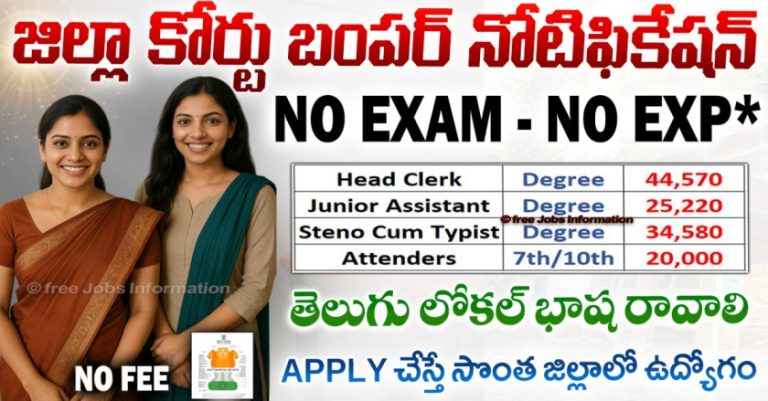 ఏపీ జిల్లా కోర్టు ఉద్యోగాలు 2025 – 8వ తరగతి అర్హతతో రాత పరీక్ష లేకుండా ఆఫీస్ సబార్డినేట్ పోస్టులు AP District Court Jobs : రాష్ట్ర ప్రభుత్వ విభాగాల్లో కొత్తగా జాబ్స్ కోసం ఎదురుచూస్తున్న నిరుద్యోగ యువతకు ఇప్పుడు మంచి అవకాశం వచ్చింది. ఆంధ్రప్రదేశ్లోని జిల్లా కోర్టు పరిధిలో పనిచేస్తున్న డిస్ట్రిక్ట్ లీగల్ సర్వీసెస్ అథారిటీ (APSLSA) ఇటీవల ఒక కొత్త ఉద్యోగ నోటిఫికేషన్ను విడుదల చేసింది. ఈ నోటిఫికేషన్ ప్రకారం, కర్నూలు జిల్లా … Read more