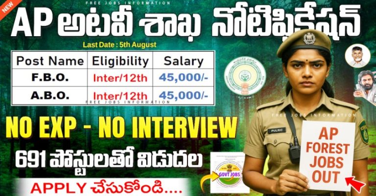 ఆంధ్రప్రదేశ్ అటవీ శాఖలో భారీగా ఉద్యోగాలు – 691 పోస్టులకు APPSC నోటిఫికేషన్ విడుదల ఆంధ్రప్రదేశ్ పబ్లిక్ సర్వీస్ కమిషన్ (APPSC) వారు 14 జూలై 2025న అటవీ శాఖలోని Forest Beat Officer (FBO) మరియు Assistant Beat Officer (ABO) పోస్టులకు సంబంధించిన నోటిఫికేషన్ నెం. 06/2025ను విడుదల చేశారు. రాష్ట్రంలో అటవీ ఉపశాఖ సేవలో ఈ పోస్టులను భర్తీ చేయనున్నట్టు ప్రకటించారు. అటవీ శాఖ ఉద్యోగాలు అంటే గ్రామీణ యువతకు ఎంతో ఆసక్తికరమైనవి. … Read more