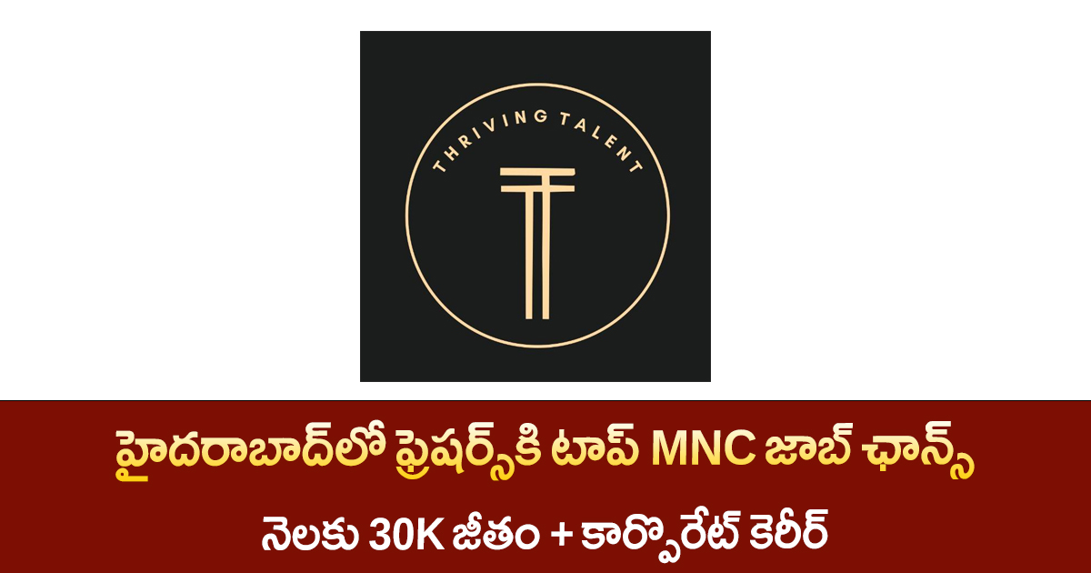 టాప్ MNC లో గ్రాడ్యుయేట్ ఫ్రెషర్స్ కి గోల్డెన్ అవకాశం – హైదరాబాద్‌లో జాబ్ Graduate Freshers Jobs in Hyderabad  : హైదరాబాద్‌లో ఉన్న ప్రముఖ మల్టీ నేషనల్ కంపెనీల్లో (MNCs) మరియు గ్లోబల్ బ్రాండ్స్‌లో పని చేసే గోల్డెన్ ఛాన్స్ వచ్చింది. Thriving Talent Recruitment Services ద్వారా ఈ ఉద్యోగాల కోసం నోటిఫికేషన్ విడుదలైంది. ఈ జాబ్స్ ప్రత్యేకంగా ఫ్రెషర్స్ కోసం, కానీ 0 నుండి 2 సంవత్సరాల అనుభవం ఉన్నవారు కూడా … Read more