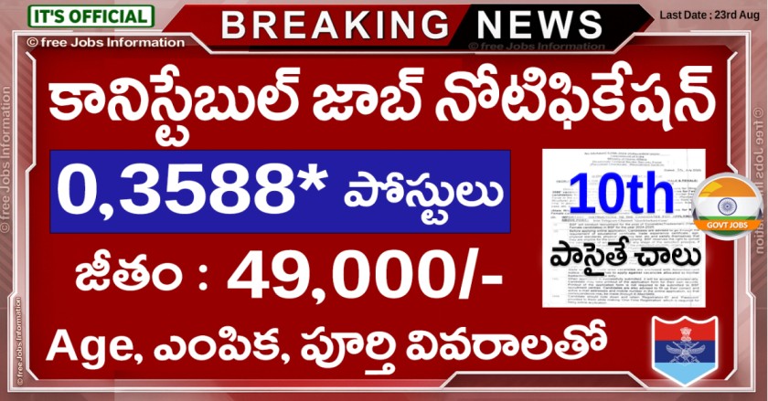 BSF Recruitment 2025 : 10th తో కానిస్టేబుల్ జాబ్స్ – 3588 ఖాళీలకు అప్లికేషన్ ప్రారంభం BSF Recruitment 2025 : భారత బోర్డర్ సెక్యూరిటీ ఫోర్స్ (BSF) నుంచి నిరుద్యోగ యువతకు బంపర్ శుభవార్త వచ్చింది. దేశ రక్షణలో భాగం కావాలనుకునే వారికి, సైనికుడిగా సేవ చేయాలనుకునే యువతకు ఇది ఒక మంచి అవకాశం. తాజాగా BSF నుంచి 3,588 కానిస్టేబుల్ ట్రేడ్స్‌మన్ పోస్టుల భర్తీకి నోటిఫికేషన్ విడుదలైంది. 2025లో జరగబోయే ఈ రిక్రూట్‌మెంట్ … Read more
