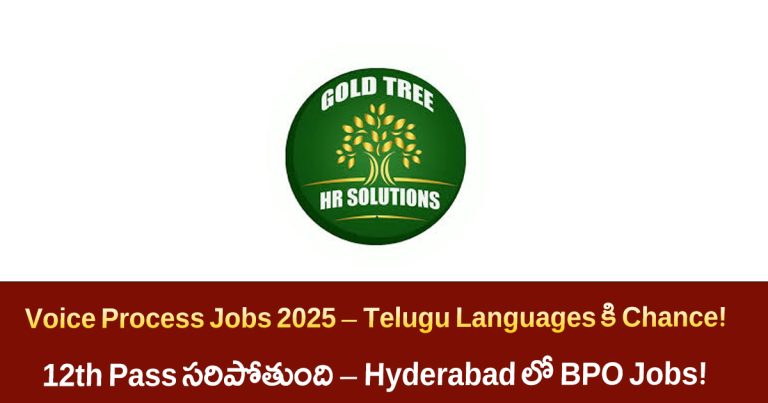 Voice Process BPO Jobs 2025 – తెలుగు, తమిళం, కన్నడ, మలయాళం, హిందీ మాట్లాడగల వారికి కొత్త అవకాశం ఇప్పట్లో యువత ఎక్కువగా చూస్తున్న ఉద్యోగాల్లో BPO జాబ్స్ కూడా ఒకటి. ముఖ్యంగా Customer Support jobs కి మంచి డిమాండ్ ఉంది. తాజాగా Gold Tree HR Solutions సంస్థ Hyderabad, Chennai, Bengaluru నగరాల్లో Customer Support Voice Process ఉద్యోగాలకు నోటిఫికేషన్ రిలీజ్ చేసింది. ఇందులో ప్రత్యేకంగా దక్షిణ భారత భాషలతో … Read more