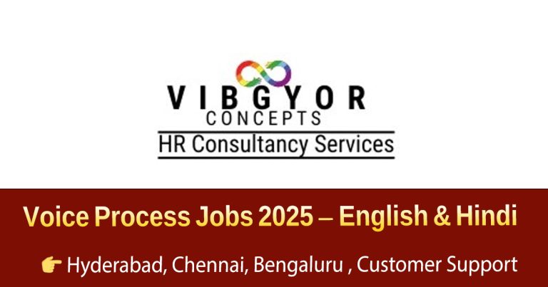 Voice Process English & Hindi Jobs 2025 – హైదరాబాద్, చెన్నై, బెంగళూరు లో Customer Support ఉద్యోగాలు | Domestic BPO Jobs