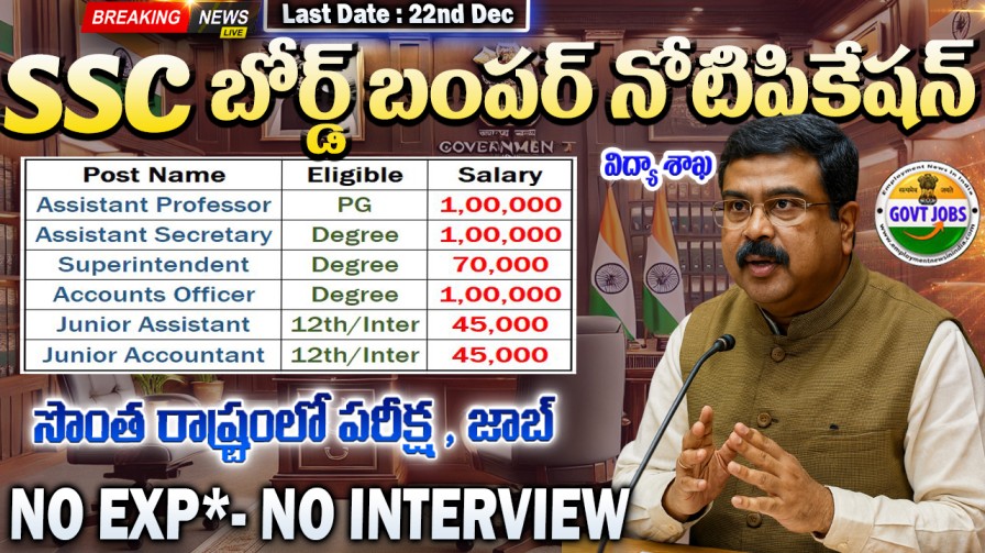 CBSE Board Recruitment 2025 – ఇంటర్ అర్హతతో కూడా మంచి కేంద్ర ప్రభుత్వ ఉద్యోగాలు CBSE అంటే పేరే చాలని అందరికి ఒక నమ్మకం ఉంటుంది. విద్యా రంగంలో అంతటి పెద్ద స్ధానం ఉన్న సంస్థలో జాబ్ అంటే చాలా మందికి కల. అలాంటి CBSE వారు 2025 సంవత్సరానికి సంబంధించి గ్రూప్ A, B, C పోస్టులకు వందకు పైగా ఖాళీలు విడుదల చేశారు. ఈ నోటిఫికేషన్ ముఖ్యంగా ఇంటర్ నుండి పోస్ట్ గ్రాడ్యుయేషన్ … Read more