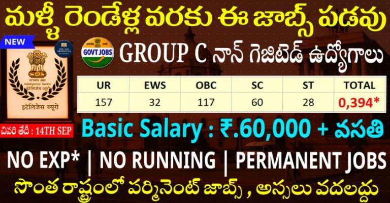 ఇంటెలిజెన్స్ బ్యూరో (IB) JIO టెక్ రిక్రూట్మెంట్ 2025 – 394 పోస్టులు IB JIO Tech Recruitment 2025 మనలో చాలామందికి సెంట్రల్ గవర్నమెంట్ ఉద్యోగాలు అంటే ప్రత్యేకమైన ఆకర్షణ ఉంటుంది. ఎందుకంటే ఇవి ఒకవైపు సురక్షితమైన ఉద్యోగాలు, మరోవైపు మంచి జీతం, పెన్షన్ బెనిఫిట్స్ తో పాటు గౌరవం కూడా ఇస్తాయి. ఇప్పుడు అలాంటి గవర్నమెంట్ ఆఫీసులలో ఒకటైన ఇంటెలిజెన్స్ బ్యూరో (IB) నుండి కొత్తగా జూనియర్ ఇంటెలిజెన్స్ ఆఫీసర్ టెక్నికల్ (JIO-II/Tech) పోస్టుల … Read more