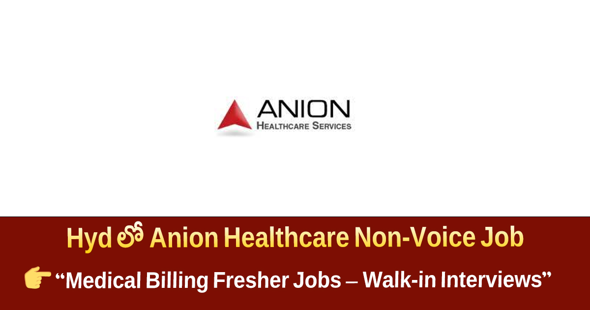 Anion Healthcare Non-Voice Jobs in Hyderabad | అనియన్ హెల్త్‌కేర్ మెడికల్ బిల్లింగ్ వాక్-ఇన్ ఇంటర్వ్యూలు 2025