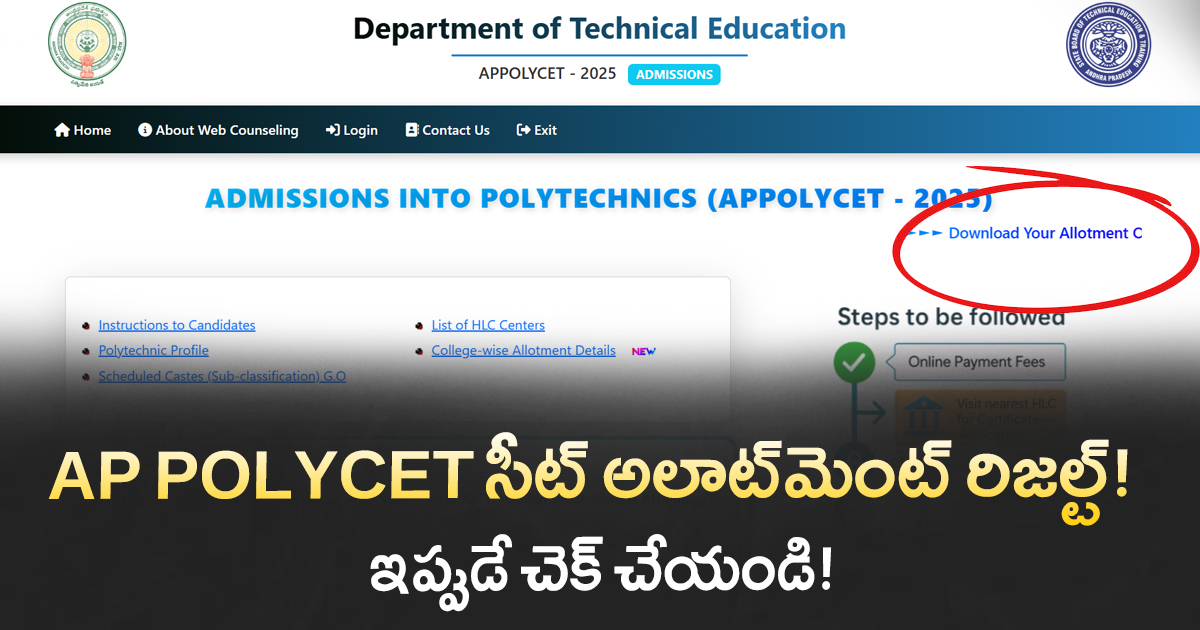 AP POLYCET 2025 Final Phase Seat Allotment Results వచ్చేశాయి! ఎక్కడ చూసుకోవాలి? పూర్తి వివరాలివే