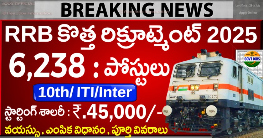 రైల్వే టెక్నీషియన్ 2025 నోటిఫికేషన్ వచ్చేసింది! – 6238 ఉద్యోగాలు, ఒకే CBT తో అంతా తేలిపోతుంది! RRB Technicians Recruitment 2025 : మనకు తెలిసిందే… రైల్వే ఉద్యోగం అంటే పక్కా భద్రత, పక్కా జీతం, పక్కా ఫ్యూచర్! ఇప్పుడే RRB (Railway Recruitment Board) వదిలిన నోటిఫికేషన్ చూస్తే, మనం ఎంతకాలంగా ఎదురు చూస్తున్న ఉద్యోగాల పండుగ మొదలైపోయింది.6238 Technician పోస్టులు, ఓకే CBT exam తో – అదే గోల. ఈ అవకాశాన్ని … Read more