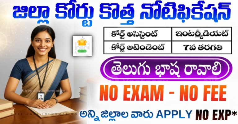 తెలంగాణ జిల్లా కోర్ట్ ఉద్యోగాల నోటిఫికేషన్ – పూర్తి వివరాలు Telangana District Court Jobs 2025  తెలంగాణలో ప్రభుత్వ ఉద్యోగాల కోసం ఎదురుచూస్తున్న నిరుద్యోగ యువతకి ఒక మంచి అవకాశం వచ్చింది. నారాయణపేట జిల్లా కోర్ట్‌లో కోర్ట్ అసిస్టెంట్ మరియు కోర్ట్ అటెండర్ పోస్టుల భర్తీకి నోటిఫికేషన్ విడుదలైంది. ఇది తాత్కాలిక ప్రాతిపదికన భర్తీ చేయబోయే ఉద్యోగాలు అయినా, ప్రభుత్వ విభాగంలో పనిచేసే అవకాశమే చాలా మందికి మంచి అడుగు రాయి అవుతుంది. ఏ పోస్టులు … Read more