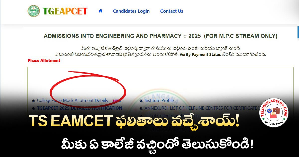 TS EAMCET 2025 Seat Allotment ఫలితాలు వచ్చేశాయ్… ఫస్ట్ విడతలో మీకేం సీటు వచ్చిందో తెలుసుకోండీ!