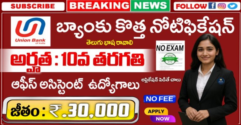 మనలో చాలామందికి ప్రభుత్వరంగంలో జాబ్ అంటే ఒక సెటిల్డ్ లైఫ్, భద్రత, మంచి సాలరీ, ఇంకా బెనిఫిట్స్ అన్నీ గుర్తుకువస్తాయి. అలాంటిది ఇప్పుడు తెలంగాణలో మరో మంచి అవకాశం వచ్చింది. UBI (Union Bank of India) Telangana నుంచి కొత్తగా రిక్రూట్మెంట్ నోటిఫికేషన్ రిలీజ్ అయ్యింది.